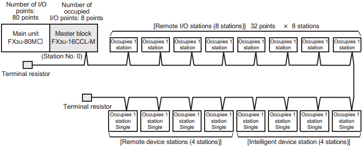 - FX3U (ver 2.2 or later) kết nối trực tiếp với 1 FX3U-16CCL-M